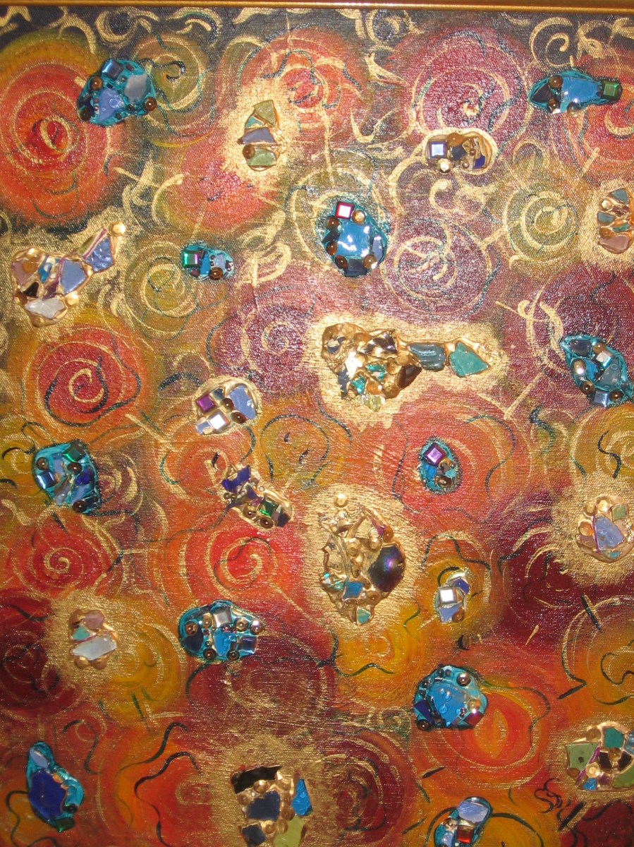 Oil, gesso, glass, mixed media