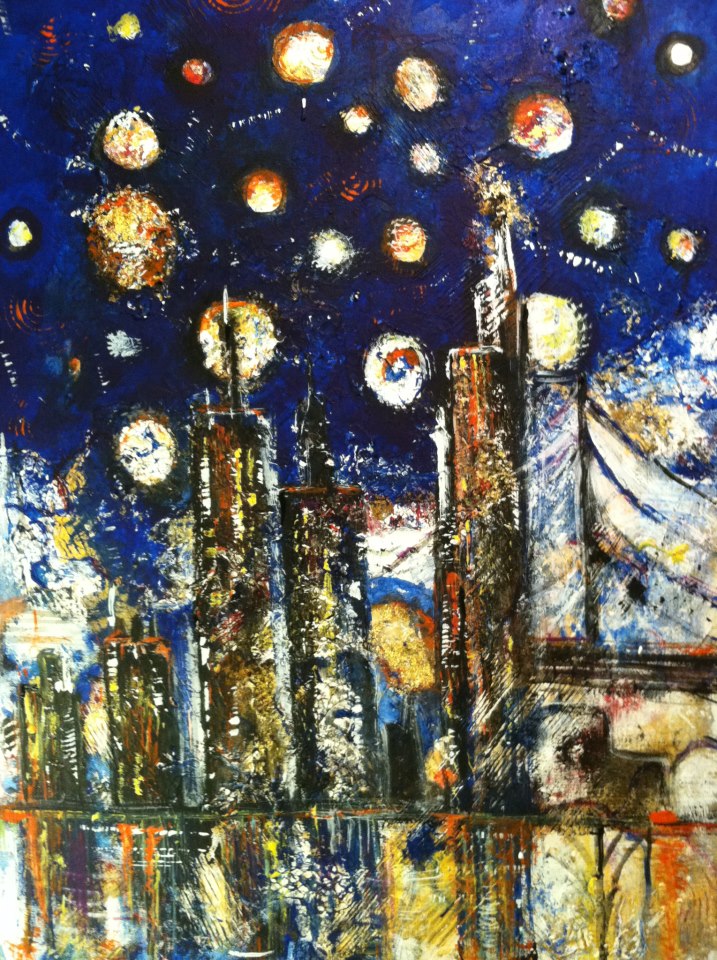 City Moons – Acrylic and Mixed Media
