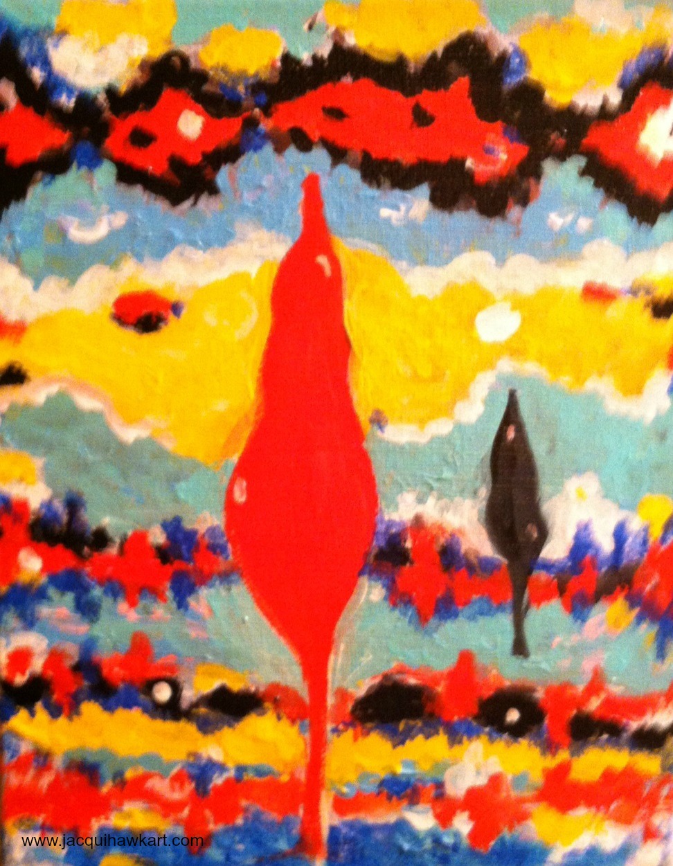 Still FREEZING cold here in Massachusetts 😦 I’m still running to the hills of color to brighten and warm up ! This is a small funky abstract called “Secret Admirer” 🙂