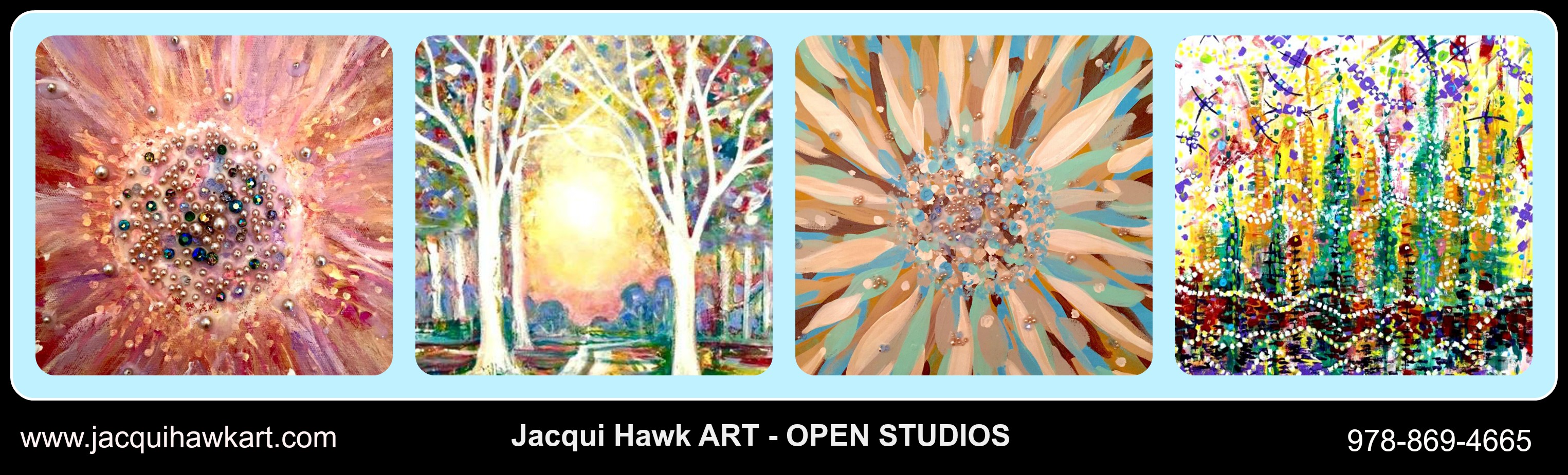 Jacqui Hawk is a nationally collected and award winning artist living in Dunstable MA. Her work has been featured in solo, invitational juried state and national exhibitions and represented in private and corporate collections in the US, Europe and Asia. Her abstract work is represented at 100 Market Street Gallery, Portsmouth NH.