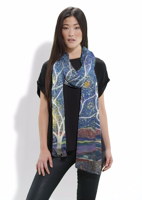 The scarves are made out of 100% MicroModal by Lenzing, a luxuriously soft botanic silk fabric made out of European beechwood. Because of modal’s botanic origin, it is very eco-friendly. MicroModal offers a soft beautiful sheen, with colors which are bright and vibrant !