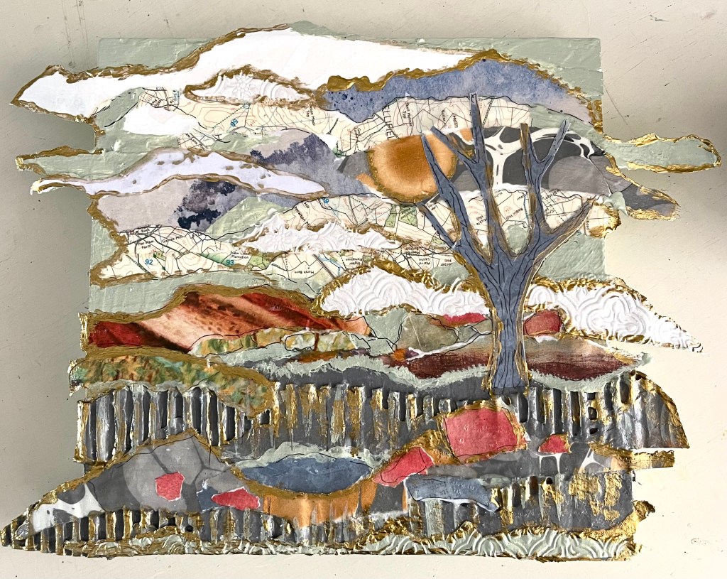 Torn Landscape is a class I developed last year and have taught at Sandwich Arts Alliance on Cape Cod and Plymouth Center for the Arts. In this introspective art class, students engage in a powerful exercise of self-discovery and emotional expression by tearing paper and then reconstructing it to symbolize their unique internal landscape.